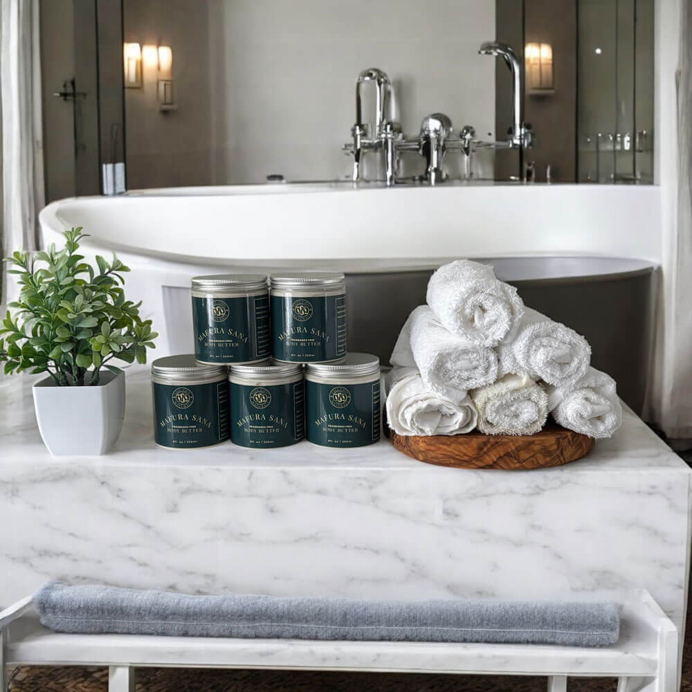 Immerse your skin in the pure, opulent richness of Mafura Sana Body Butter, a luxurious blend crafted to celebrate the unparalleled beauty of nature’s gifts. With the purity of cold-pressed Mafura Butter at its heart, this creamy indulgence melts effortlessly into your skin, cocooning it in deep, long-lasting hydration.